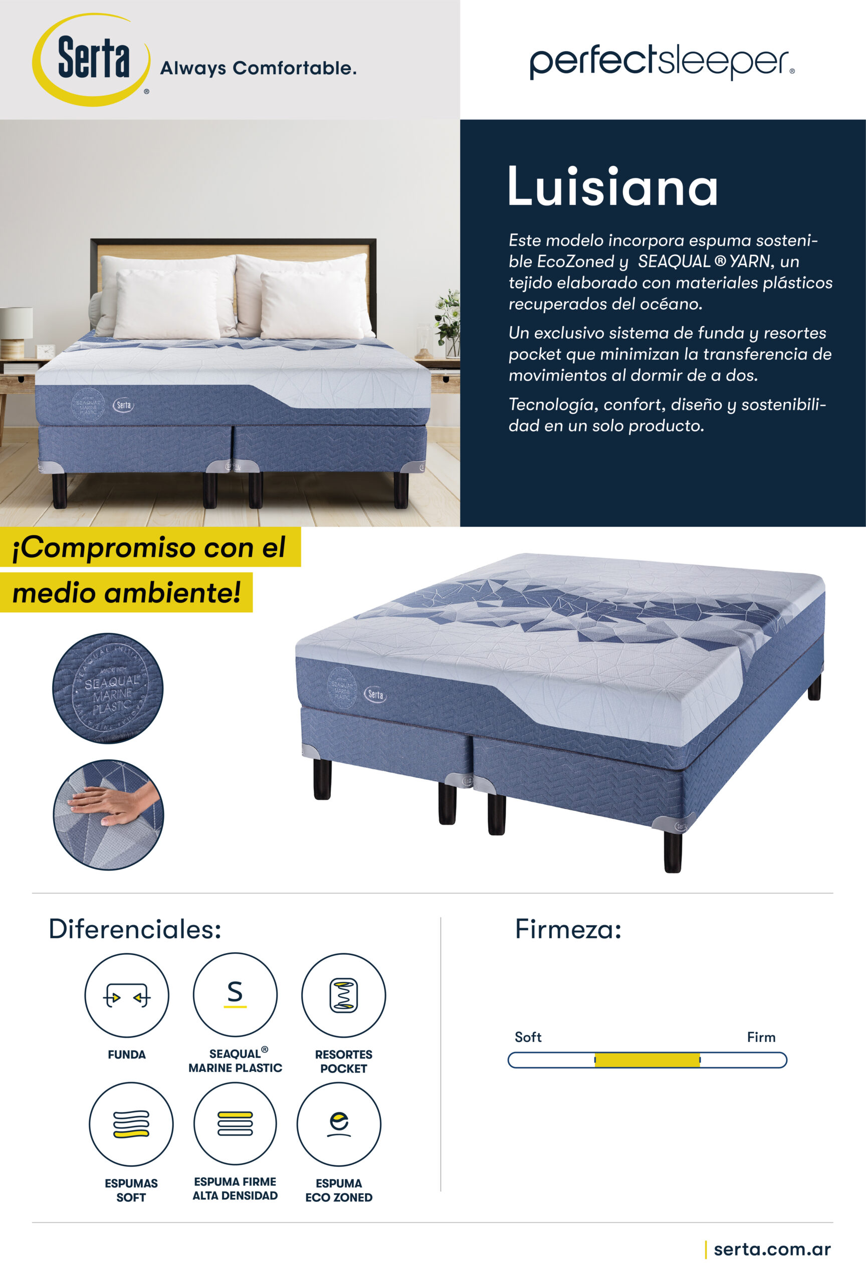 - Densidad: La densidad específica no está detallada, pero el Colchón Serta Luisiana 180x200cm cuenta con capas de espuma soft de alta densidad, proporcionando un soporte firme y delicado.