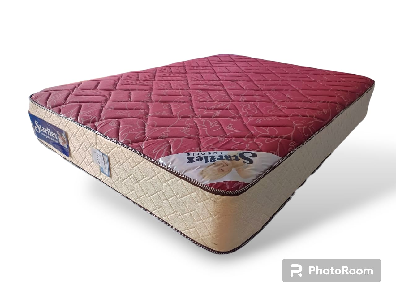 - Espuma/Resorte: Equipado con resortes biconicos, el Colchón Startflex Oro ofrece un soporte óptimo y una distribución uniforme del peso corporal para un descanso reparador.