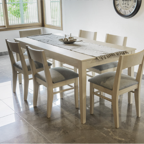 La Mesa GIOVA combina la elegancia del estilo nórdico con la resistencia del pino macizo de alta calidad, creando una pieza funcional y sofisticada para tu hogar. Disponible en una amplia variedad de lustres como Ámbar, Cedro, Miel, Wengue, Blanco y Fresno, esta mesa puede adaptarse perfectamente a cualquier decoración, aportando calidez y modernidad a tus espacios.