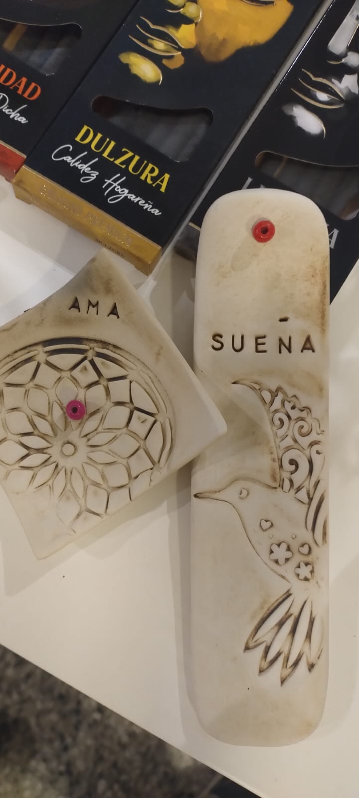 Añadí un toque especial a tus momentos de relajación con nuestros porta sahumerios. Disponibles en una variedad de modelos y estilos, son el complemento perfecto para disfrutar de tus sahumerios favoritos mientras decoras tus espacios con elegancia y originalidad.